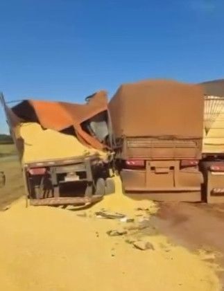 Há ainda registro de vazamento de combustível e de carga de soja e milho na pista.