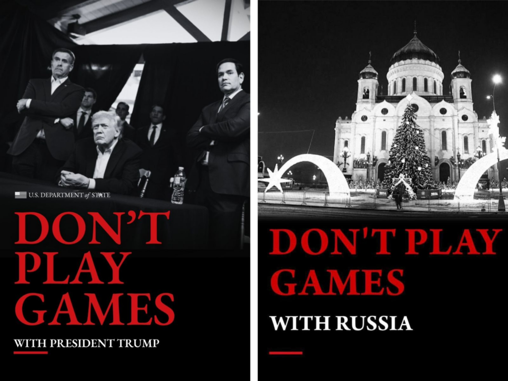 Já nesta terça-feira, Medvedev imitou a publicação do Departamento de Estado sobre a Venezuela. A arte, que segue o mesmo padrão da usada pelo governo americano, traz a Catedral de Cristo Salvador, em Moscou, como plano de fundo.