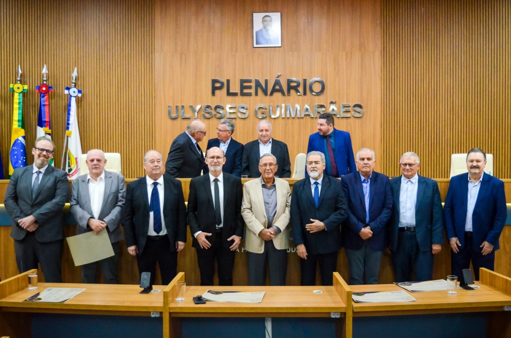 Participaram da solenidade o presidente da Câmara Municipal, Paulo César Schuh, vereadores e representantes de diversas entidades do agronegócio de Mato Grosso, além de familiares dos homenageados.