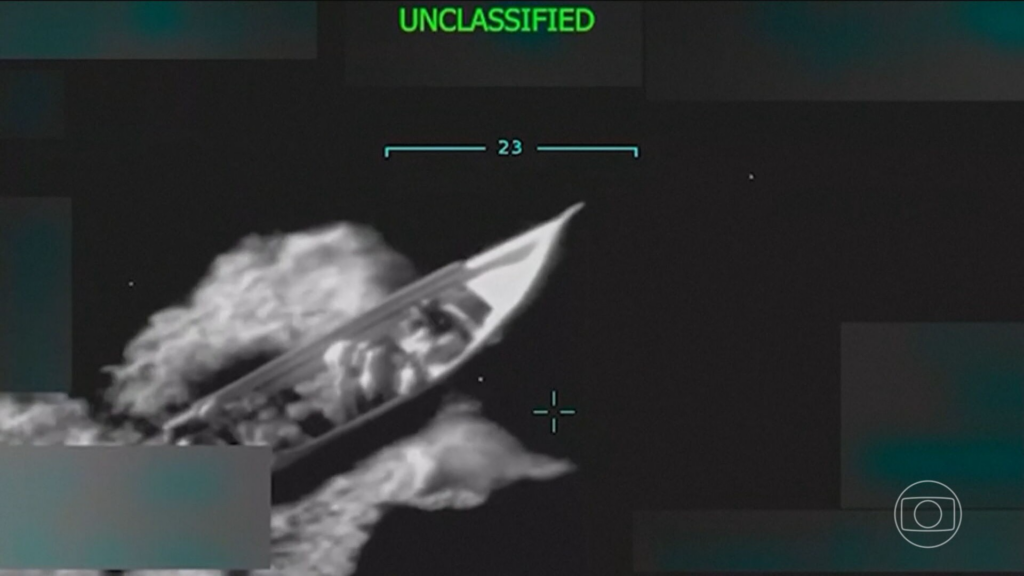 Imagem de bombardeio contra embarcação no Caribe