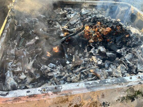 Após os bombeiros identificarem que havia ossada na carroceria do veículo, a Guarda Municipal foi acionada e identificou que se tratava de restos de animais.