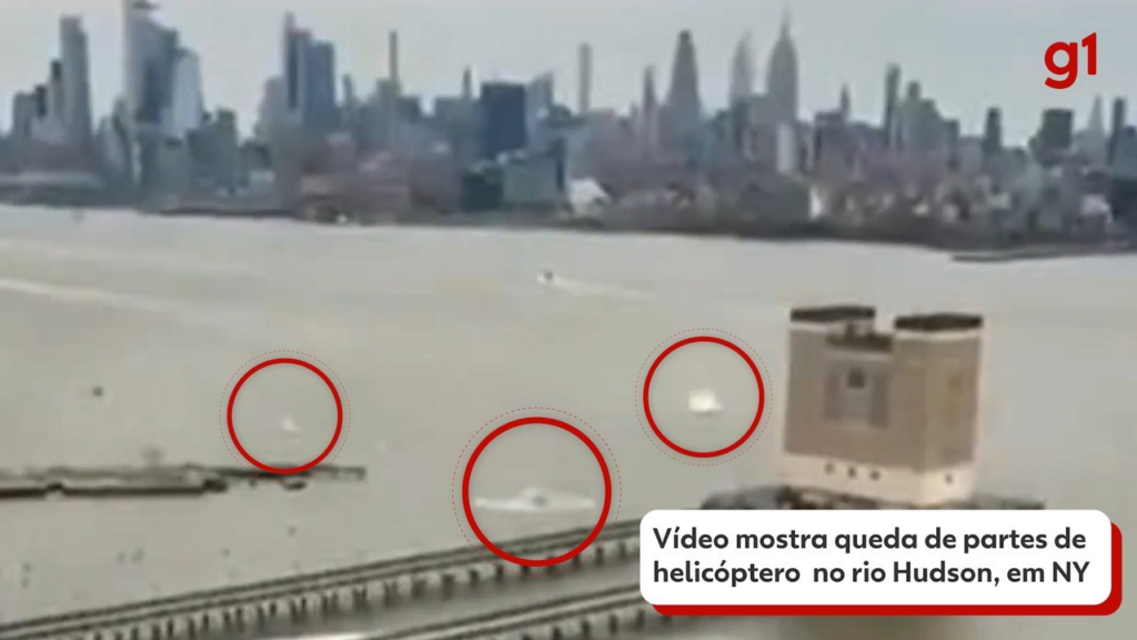 Vídeo mostra queda de partes de helicóptero no rio Hudson, em Nova York