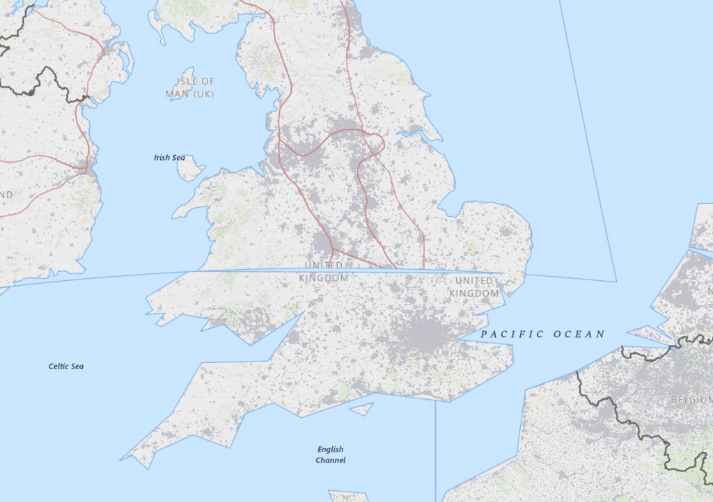 Reino Unido aparece dividido por faixa de água em mapa do USGS