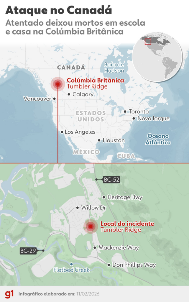A Escola Secundária de Tumbler Ridge, onde ocorreu o ataque, tem 160 alunos do sétimo ao décimo segundo ano, com idades entre 12 e 18 anos, de acordo com seu site. A escola permanecerá fechada pelo resto da semana e oferecerá apoio psicológico a quem precisar, informaram as autoridades escolares.