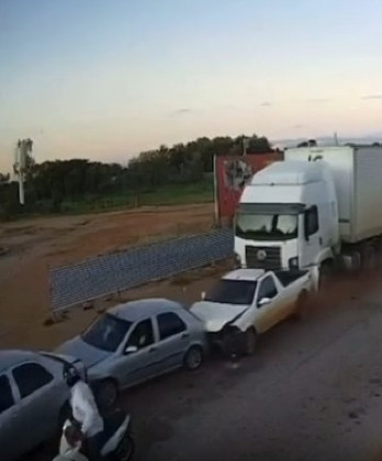 Imagens de uma câmera de segurança registraram o momento em que uma carreta desgovernada atingiu vários veículos na avenida São Luiz, em Cáceres (a 217 km de Cuiabá). O acidente ocorreu nessa quarta-feira (02).
