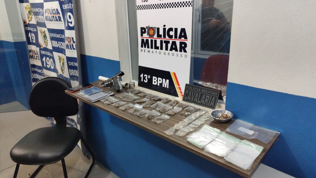 Também no local, a PM localizou 26 porções de maconha e 14 porções de pasta base de cocaína. O homem recebeu voz de prisão e foi conduzido à delegacia da cidade.