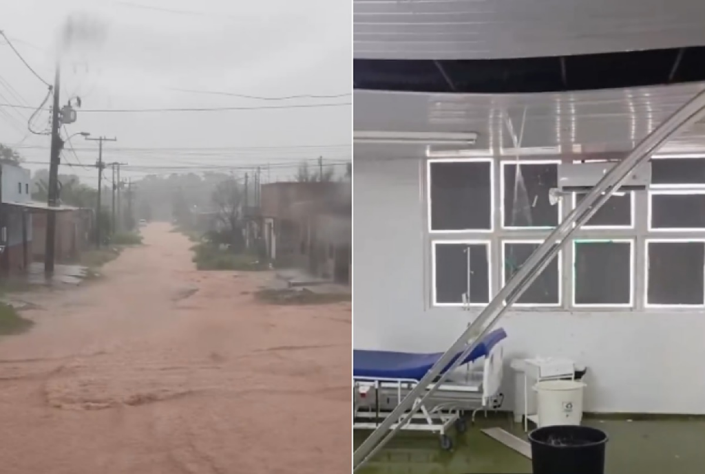 Já noutro vídeo, divulgado pelo repórter Serginho Lapada, um homem filma o teto de uma enfermaria do Hospital e Pronto-Socorro Municipal de Cuiabá destruído, com forros pendurados e goteiras.