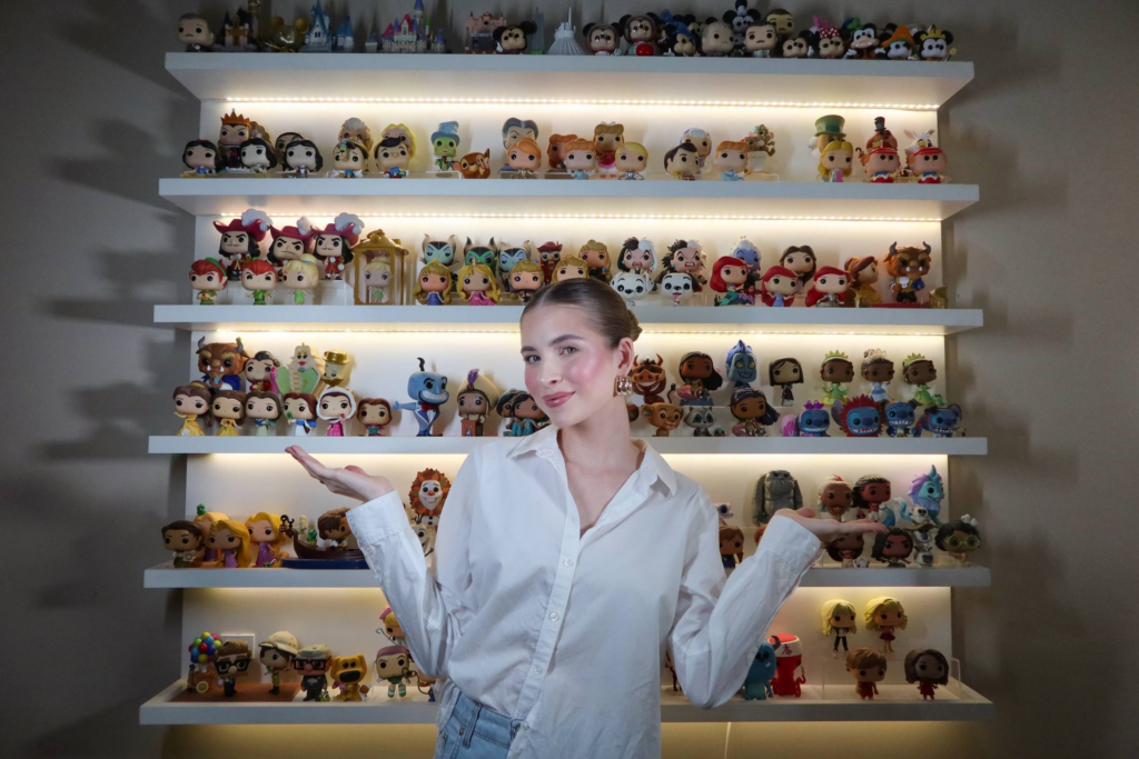 A influenciadora Fernanda Tumas, 29, coleciona itens da Disney, e um deles são bonecos Funko Pop. Ela lembra que o primeiro que comprou foi um da cinderela, em uma viagem que fez há aproximadamente seis anos.