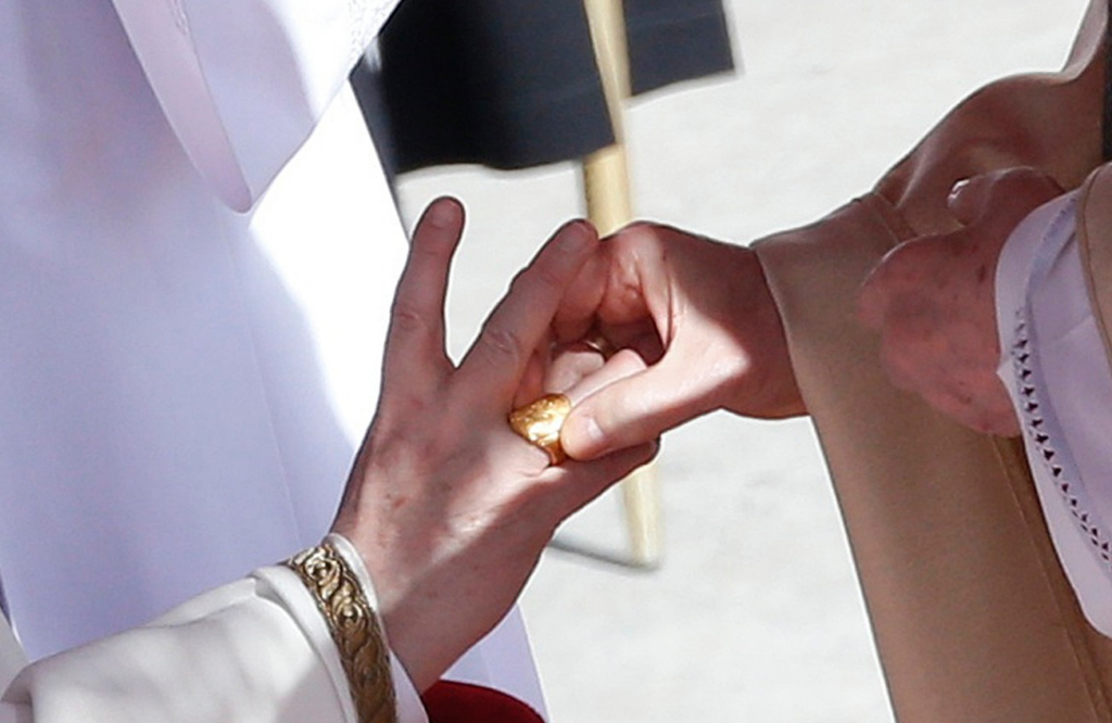 Anel do pescador na mão do papa Francisco