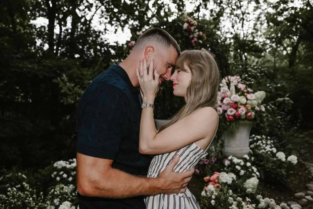 A foto do pedido de casamento de Taylor Swift e Travis Kelce é de uma paixão inconfundível, mas que brilha por um prisma de silenciosa compostura.