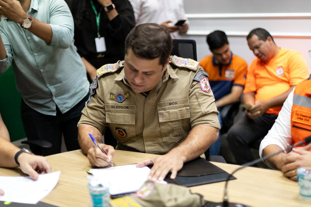 O projeto foi oficializado com a assinatura do comandante-geral do CBMMT, coronel BM Flávio Glêdson Vieira Bezerra, do prefeito de Cuiabá, Abílio Brunini, e do secretário adjunto de Defesa Civil de Cuiabá, coronel RR Alessandro Borges Ferreira, durante a solenidade realizada no Palácio Alencastro.