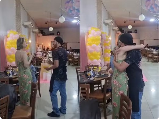O estudante de Direito Arthur Souza Colares, de Belo Horizonte, se disfarçou de garçom e entrou no salão carregando uma garrafa de suco. Assim que se aproximou, Ritcheli o reconheceu e os dois se abraçaram sob aplausos. O momento foi registrado em vídeo e recebeu milhões de visualizações nas redes sociais.