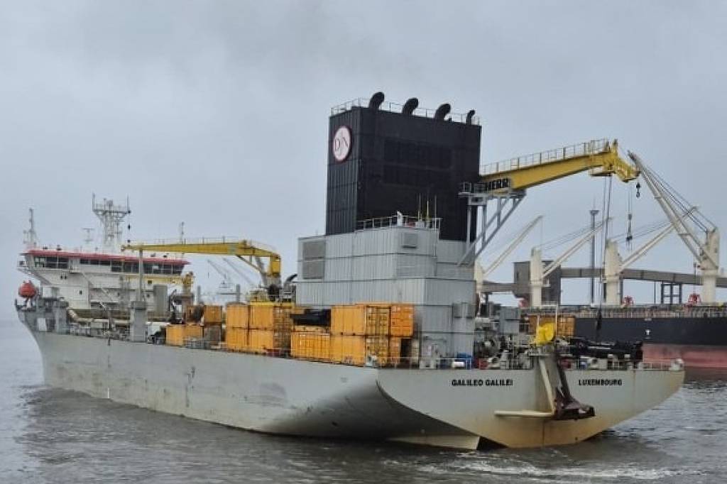 A draga Galileo Galilei, usada no alargamento da praia Central em Balneário Camboriú, chegou na sexta-feira (3) a Itapoá, no litoral norte de Santa Catarina, para a obra de dragagem do canal de acesso ao Complexo Portuário da baía de Babitonga.