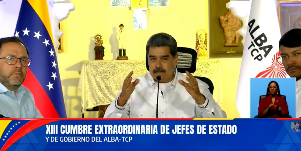 Durante discurso em uma cúpula da Aliança Bolivariana para os Povos da Nossa América – formada pela Venezuela, Cuba, Bolívia, Nicarágua, Dominica, Antigua e Barbuda e São Vicente e Granadinas – ele citou “agressões imperialistas” e afirmou que, no momento, a América Latina e o Caribe formam um território em disputa entre “forças dos povos independentistas e de luta e as forças obscurantistas estadunidenses”.