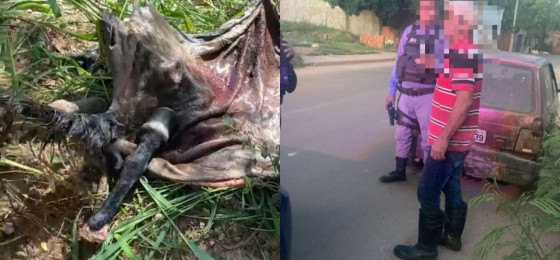 Com base nas informações, os policiais localizaram o suspeito e o abordaram. Ao realizar revista pessoal, nenhum material ilícito foi encontrado com o homem. Entretanto, ao fazer buscas no veículo, os policiais localizaram partes de um animal abatido.