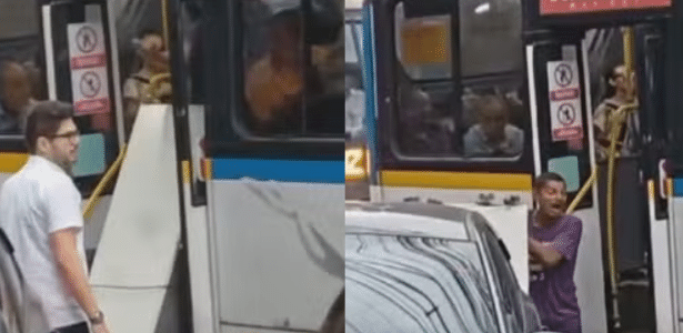 Não contente, tá xingando o motorista. (…) Vai atrapalhar todo mundo. Vai motorista, vai embora, esse é doido. Pedestre que gravou a cena, após o passageiro sair com a geladeira do ônibus