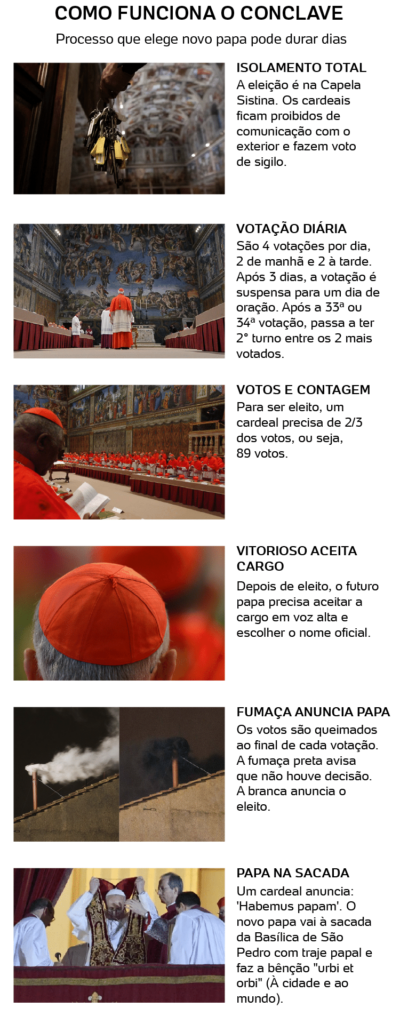 Durante o conclave, os cardeais não podem manter qualquer tipo de comunicação com o exterior. É proibido enviar mensagens eletrônicas ou alimentar perfis nas redes sociais, por exemplo.