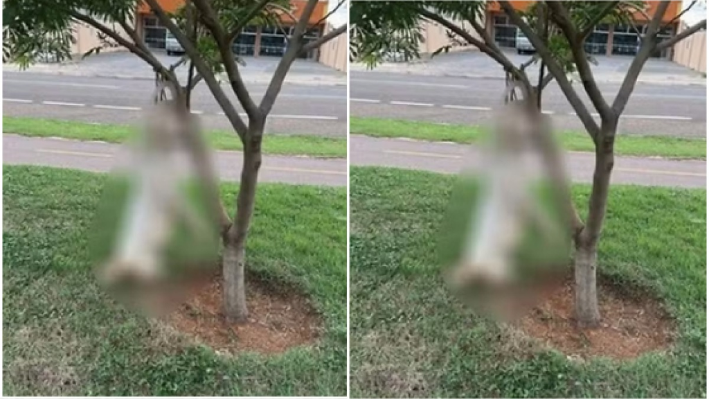 O corpo do pitbull foi encontrado na noite de quarta-feira (15), pendurado por cordas em um galho de árvore. Imagens que circulam nas redes sociais mostram o animal morto, e o caso é investigado pela Polícia Civil.