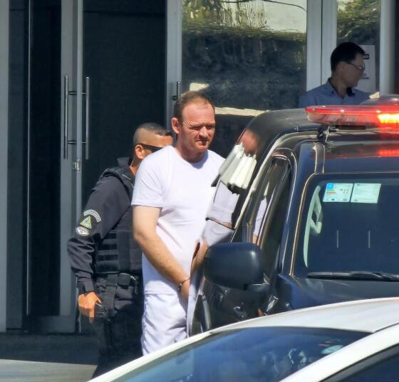 Imagens que circulam nas redes sociais (veja no final da matéria) mostram o assassino com as mãos e os pés algemados, usando camiseta e bermuda brancas, sendo colocado no camburão da polícia.