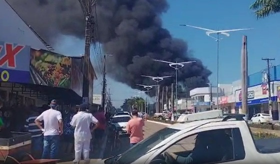 Um incêndio atingiu um supermercado, nesta terça-feira (19), na cidade de Nova Monte Verde (972 km de Cuiabá).