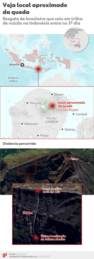 Juliana Marins é vista imóvel 500 metros penhasco abaixo, diz parque de vulcão na Indonésia