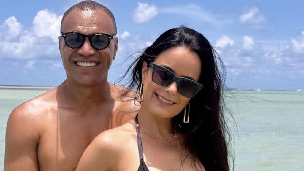 Nos Stories do Instagram, o ex-jogador e atual comentarista da Globo gravou um momento de descontração com a esposa, que é irmã do cantor Zezé Di Camargo. “Quinze anos de casados. [Vamos] passar um dia na praia. Último dia dos três que estamos passando [aqui] nesse paraíso. Te amo, mozão”, comentou Denílson a caminho da praia.