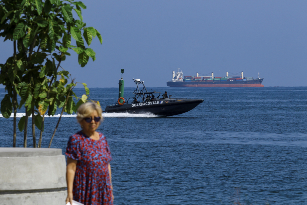 Barco da Guarda Costeira da Venezuela monitora costa de Puerto Cabello diante das tensões com a aproximação de navios militares dos EUA, em 11 de setembro de 2025.