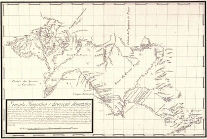 O mapa acima foi elaborado pelo primeiro Governador e Capitão General da Capitania de Matto Grosso e Cuyabá D. Antonio Rolim de Moura Tavares. Trata-se do primeiro mapa do interior do continente.