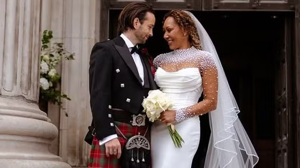 A Spice Mel B, de 50 anos, compartilhou com os seguidores do Instagram neste sábado (05), um clique romântico do seu casamento o cabeleireiro Rory McPhee, de 37 anos.
