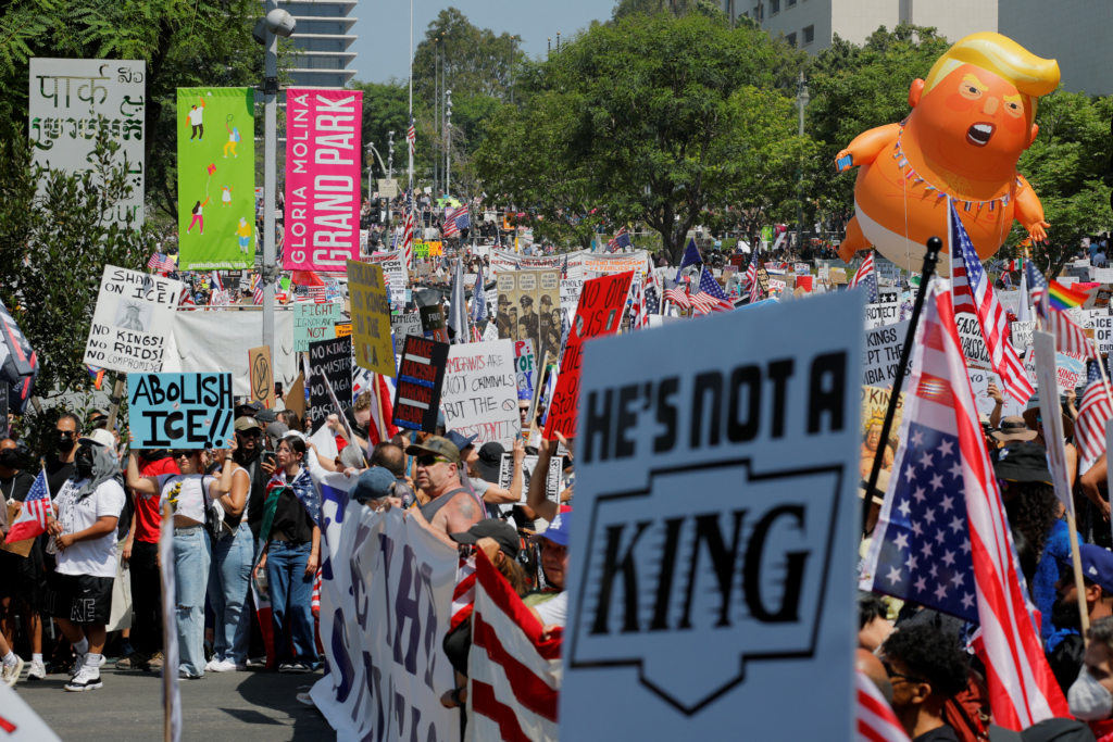 Manifestantes foram às ruas em cidades americanas durante protestos contra o governo de Donald Trump neste sábado (14). O movimento, chamado de ‘No Kings Day’, ou ‘Dia Sem Reis’, coincide com o aniversário de 79 anos do presidente americano e também com uma parada militar organizada por ele em Washington DC, capital do país.