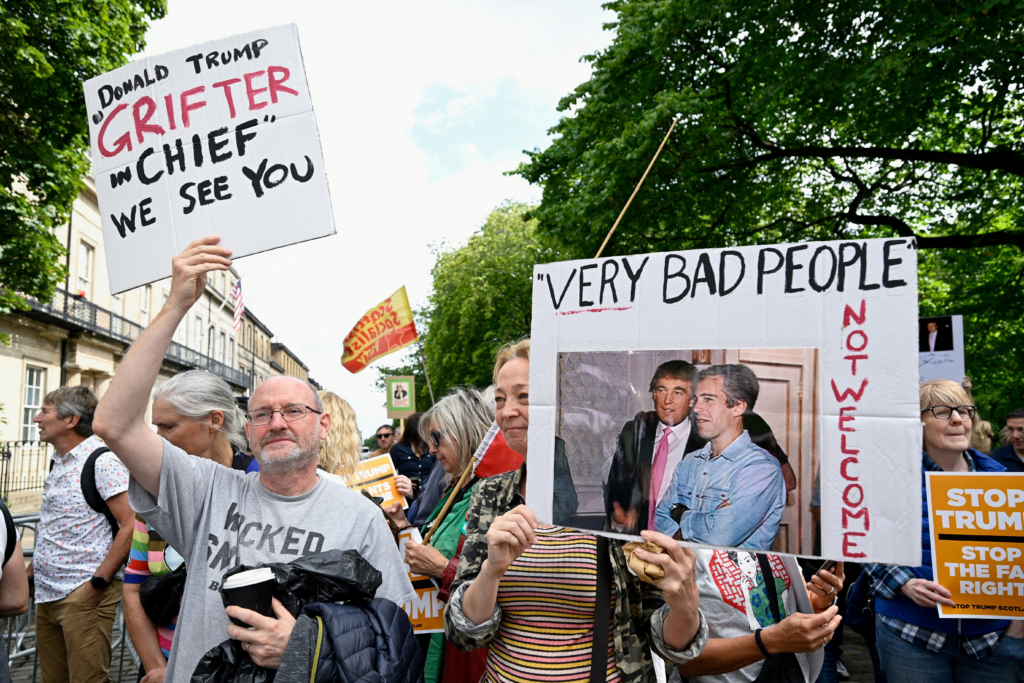 Durante a visita, o presidente americano deve se reunir com o primeiro-ministro britânico, Keir Starmer, com o líder escocês, John Swinney, e com a presidente da Comissão Europeia, Ursula von der Leyen, a quem chamou de “uma mulher altamente respeitada”.
