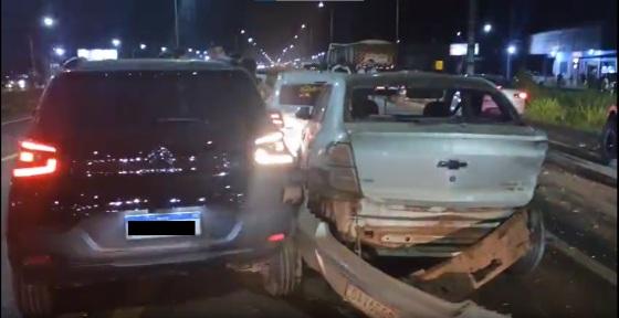 O engavetamento aconteceu na noite de sexta-feira (16).