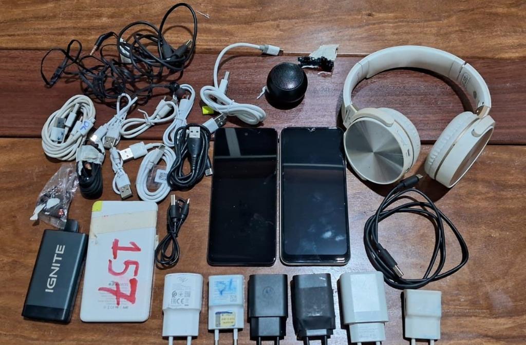 Em outra ocorrência registrada, também em Rondonópolis, a equipe de plantão da penitenciária apreendeu diversos materiais durante revista no ônibus que transporta reeducandos que trabalham extramuro. Foram encontrados dois celulares, carregadores e fontes e fones de ouvido.