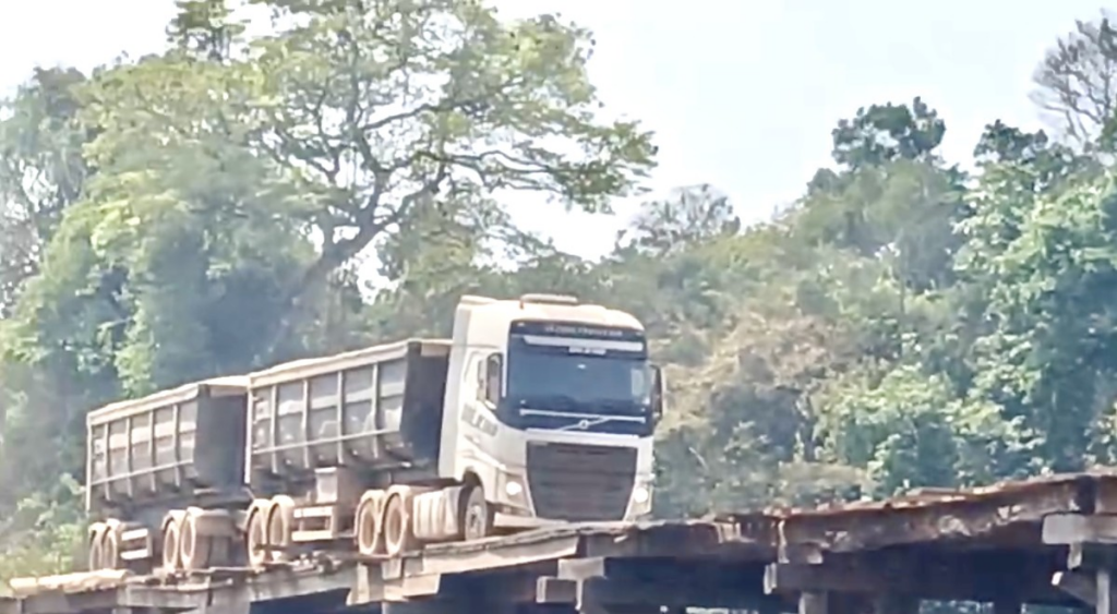 Carretas passam com motoristas dirigindo na “ponta dos dedos”  seus pesados. Vídeo enviado à coluna por fazendeiros da região, mostra uma estrutura frágil que pode cair e provocar uma tragédia.
