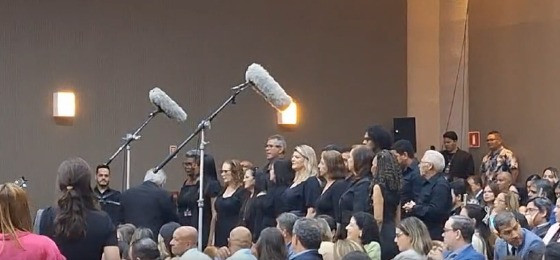 Um coral regido por um maestro e um violeiro entoou a canção “Chico Mineiro”, da dupla Tonico e Tinoco. A música deixou o novo presidente emocionado, a ponto de não conseguir discursar.
