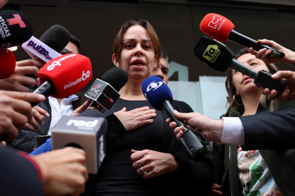 Maria Claudia Tarazona, esposa de Miguel Uribe, fala à imprensa após atentado contra seu marido em Bogotá
