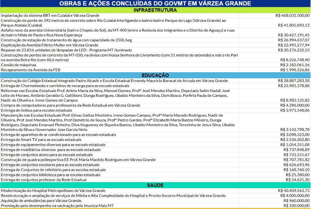Confira os investimentos do Governo de Mato Grosso em Várzea Grande:
