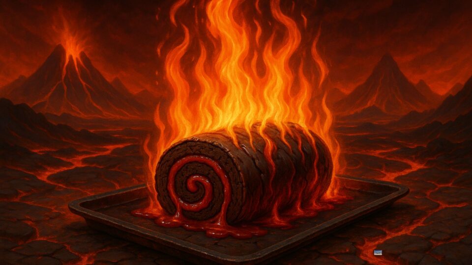 Ideal para servir com chantilly de hipocrisia, o rocambole do inferno harmoniza bem com vinho tinto — o mais vermelho possível — e discursos sobre fome feitos por quem nunca pulou uma refeição. Pelo contrário!