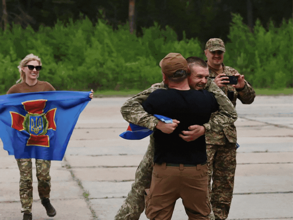 Prisioneiros de guerra ucranianos em reencontro com familiares