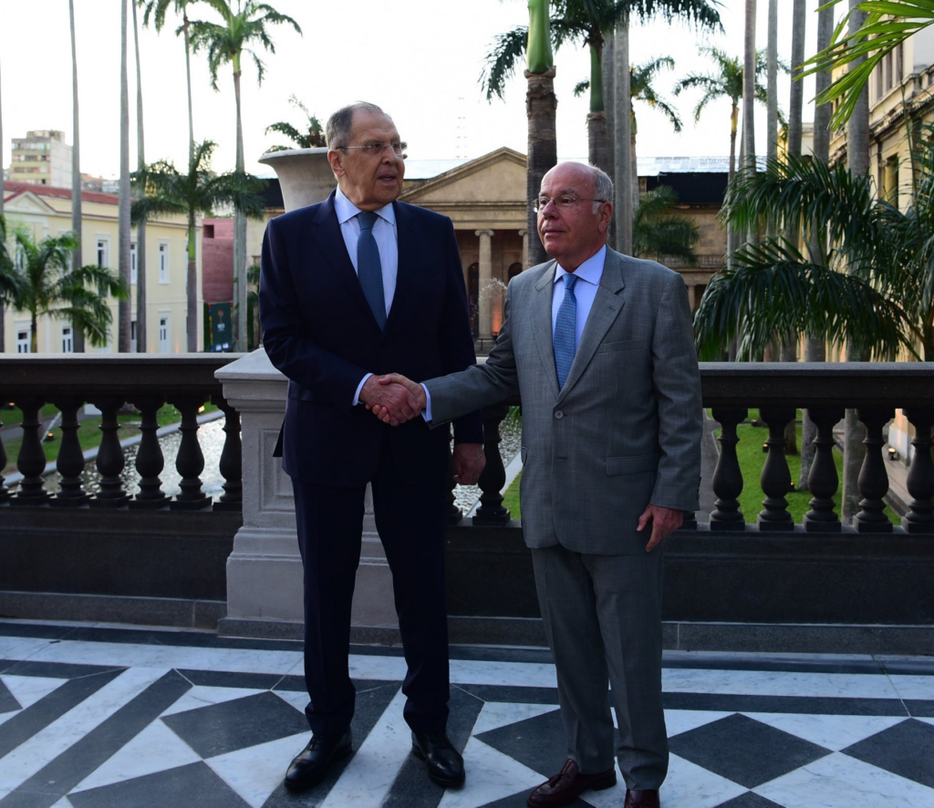 Mauro Vieira, ministro das relações exteriores do Brasil, e Serguey Lavrov, ministro das relações exteriores da Rússia