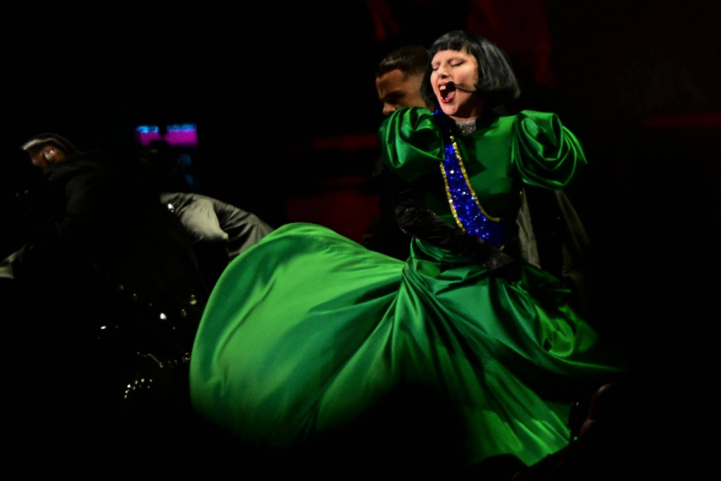 Em “Mayhem on the Beach”, a cantora apresentou seu álbum mais recente, “Mayhem”, que traz hits como “Abracadabra”, e sucessos de sua carreira, como “Born This Way” e “Bad Romance”.