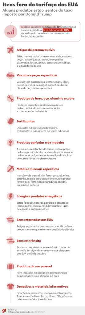 Infográfico – Lista de isenções ao tarifaço de Trump