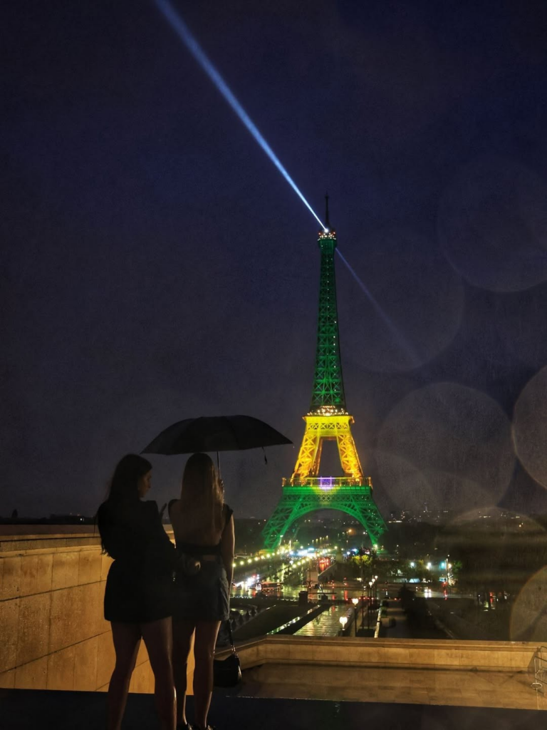 A Torre Eiffel com as cores do Brasil em 5 de junho de 2025