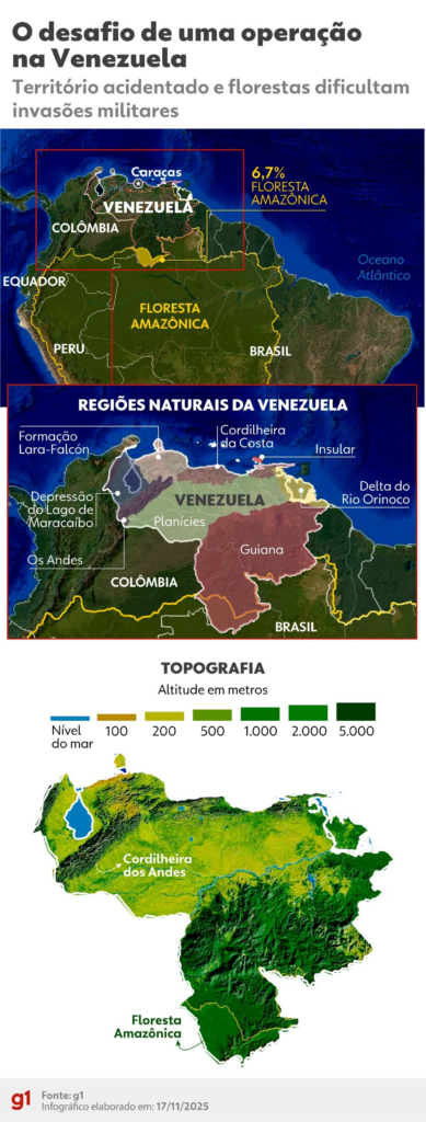 “Por enquanto, o cenário que se desenha é de que a cúpula do regime de Maduro deve permanecer na Venezuela até o fim. Mas, claro, estamos especulando. Talvez, quando as primeiras bombas caírem, eles entrem em um avião e fujam”, analisa Santoro.