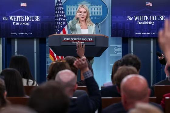A porta-voz da Casa Branca, Karoline Leavitt, durante entrevista coletiva à imprensa, em 9 de setembro de 2025.