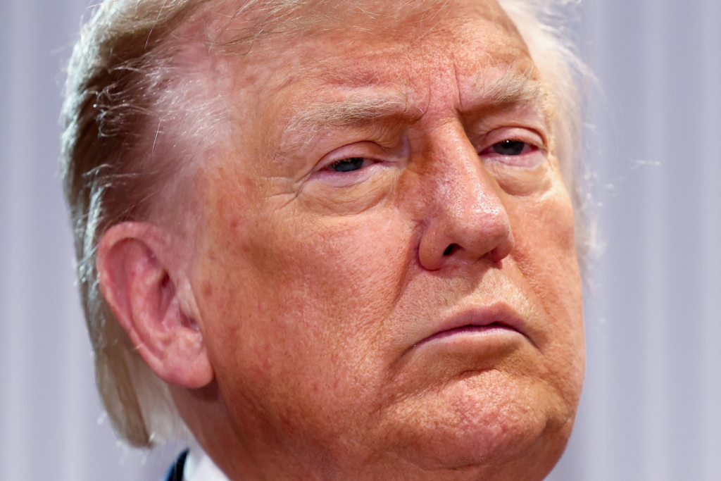 Presidente dos EUA, Donald Trump, se encontra com o primeiro-ministro canadense, Mark Carney (não mostrado na foto), na cúpula do G7 em Kananaskis, Alberta, Canadá, em 16 de junho de 2025. — Foto: Reuters/Kevin Lamarque
