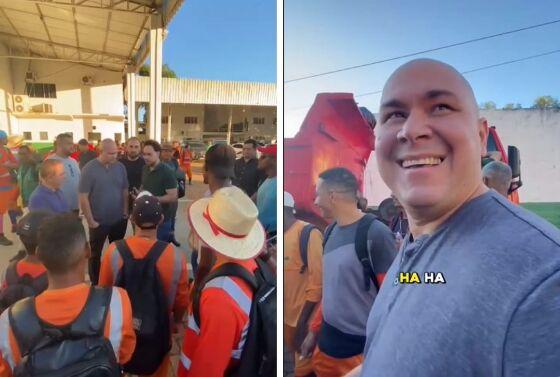 O prefeito de Cuiabá, Abilio Brunini (PL), participou de uma ação, neste sábado (17), com garis da Empresa Cuiabana de Limpeza Urbana (Limpurb) e chegou a disputar uma corrida com alguns deles.