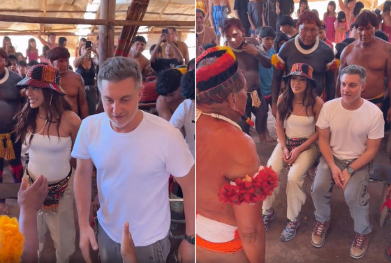 VÍDEO – Anitta e Luciano Huck participam de cerimônia no Xingu