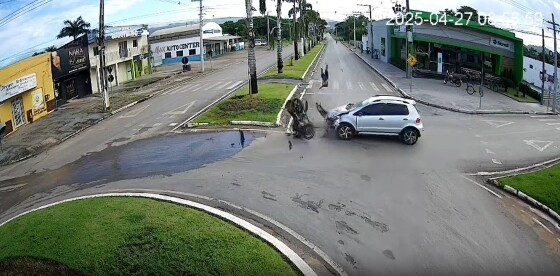 O acidente foi registrado por câmeras de segurança por volta das 8h, quando um motorista, conduzindo um Volkswagen Fox, acabou sendo surpreendido pelo motociclista em uma Honda CG 160, que vinha da rua lateral. Com a batida, o piloto é arremessado há alguns metros de distância à frente do acidente.