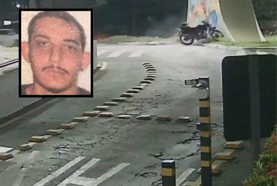 Uma câmera de segurança registrou o momento em que o entregador de aplicativo João Herick Taques Fischer, de 23 anos, bateu em um pilar na Avenida do CPA, em Cuiabá, na noite dessa segunda-feira (28). Com o impacto, João morreu na hora.